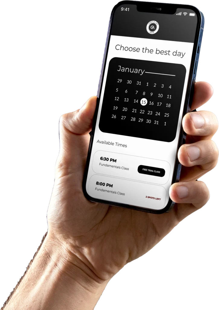 Click below, fill out the form, and pick your schedule. In less than 15 minutes, you’ll be on the mat.